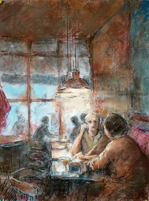 Rotterdam, café Melief Bender, pastelkrijt op papier, 65x50